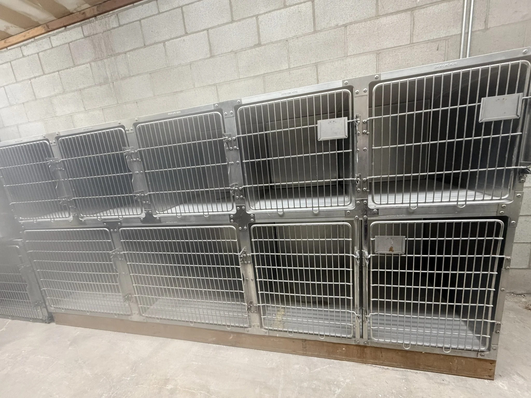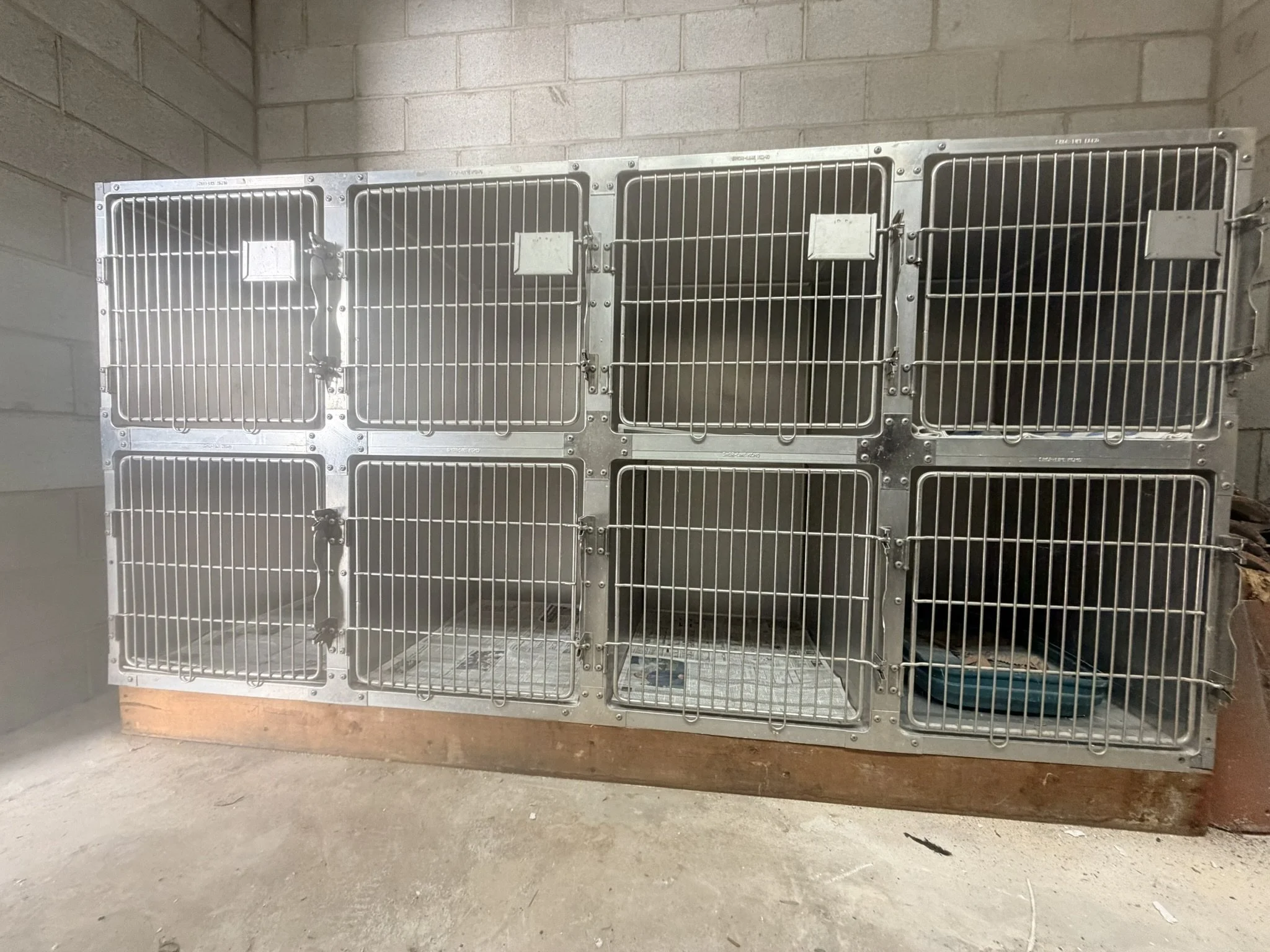 VARIOUS SIZES OF KENNELS, SET UP AS INDIVIDUAL OR AS COMBOS.