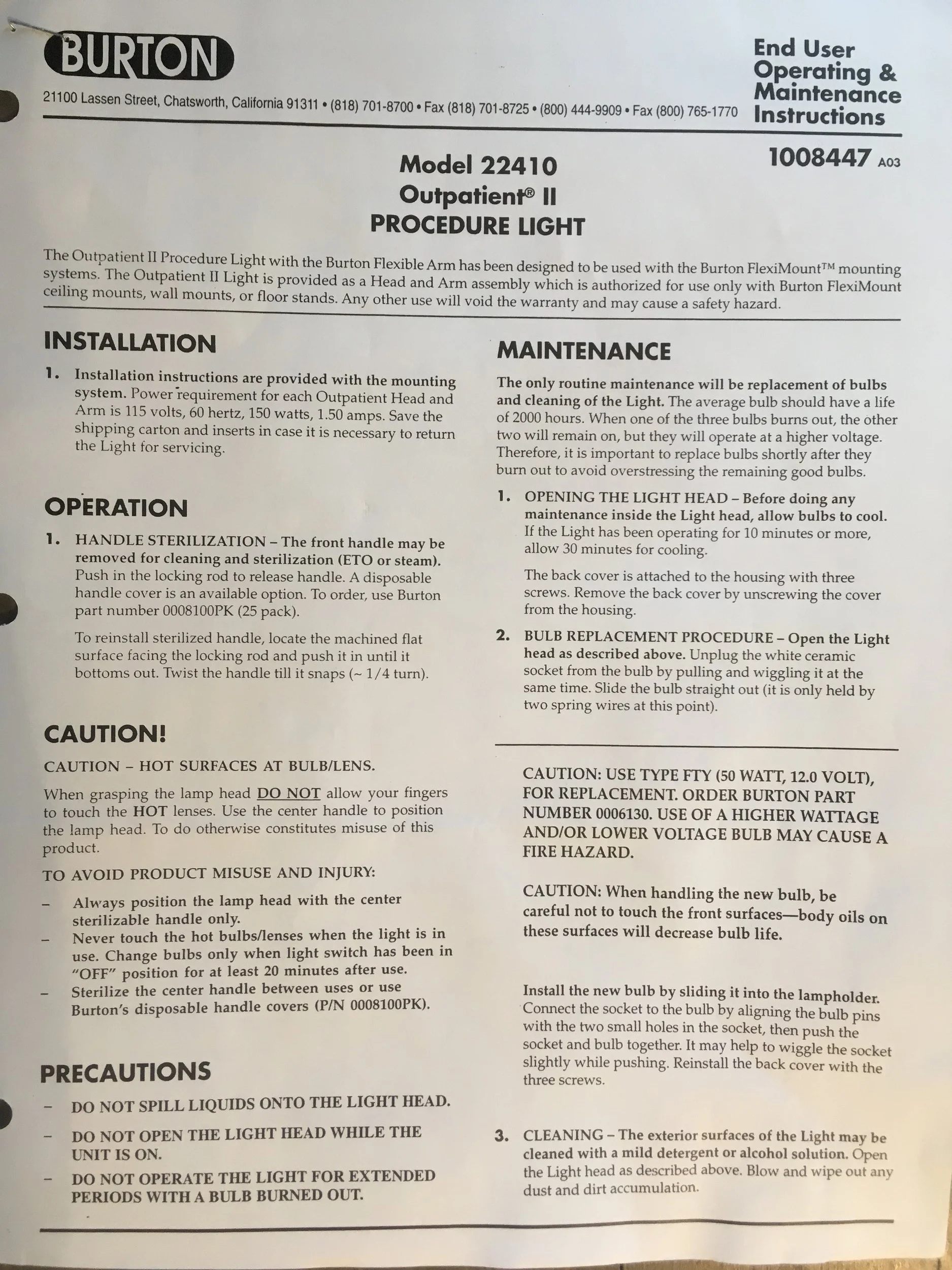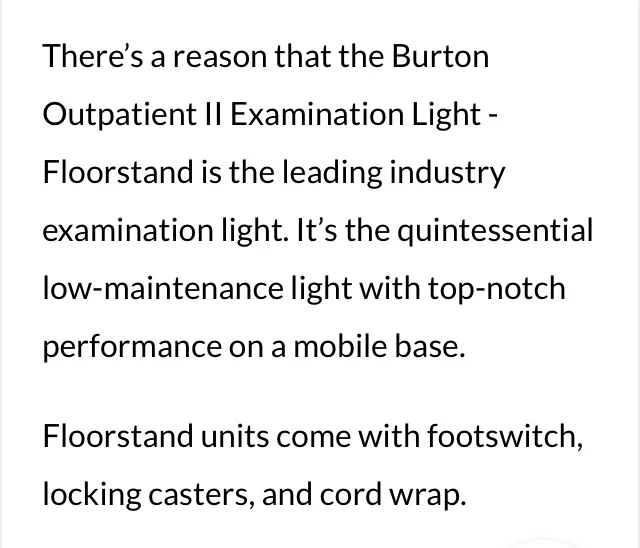 SOLD $900 SOLD PRICE DROP !! Burton Outpatient II Surgery Light with FlexiMount Floor Stand - LOCAL PICK UP ONLY in Dallas area