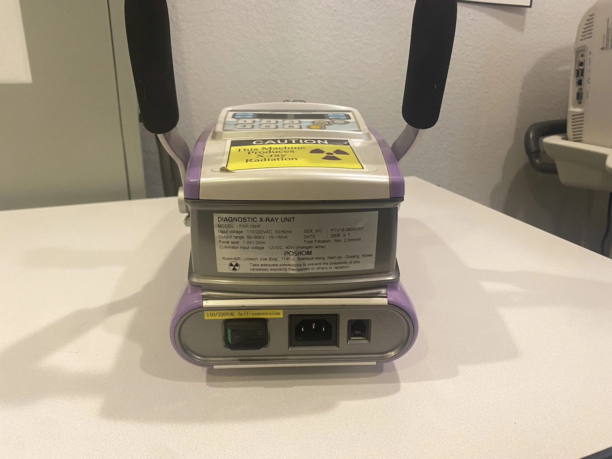 This is a very lightly used 80kVp/ 16mA line powered PHP 16HF from Poskom.