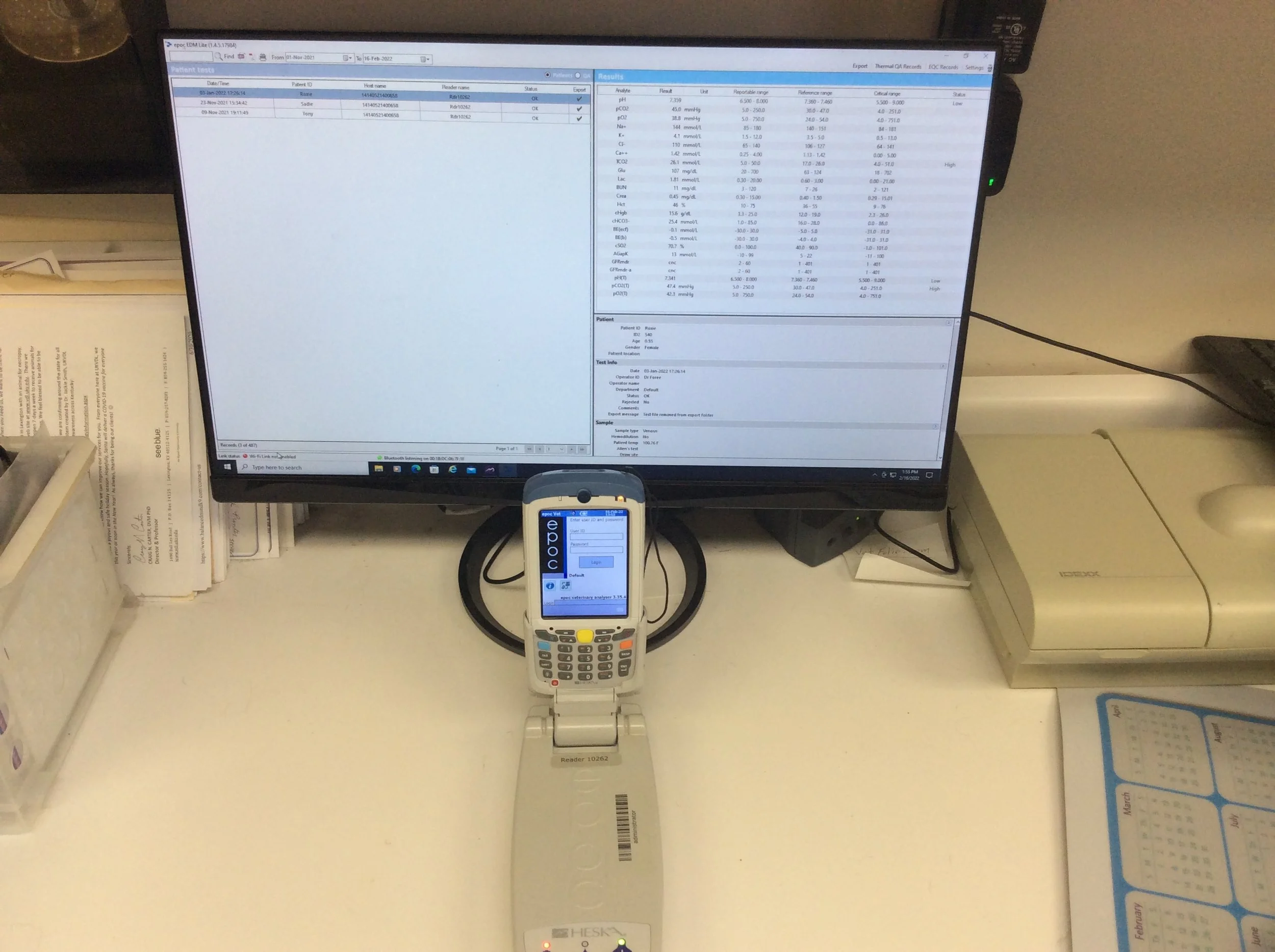 Heska Element POC System Reader and Host for Blood Gas and Electrolytes measurements.