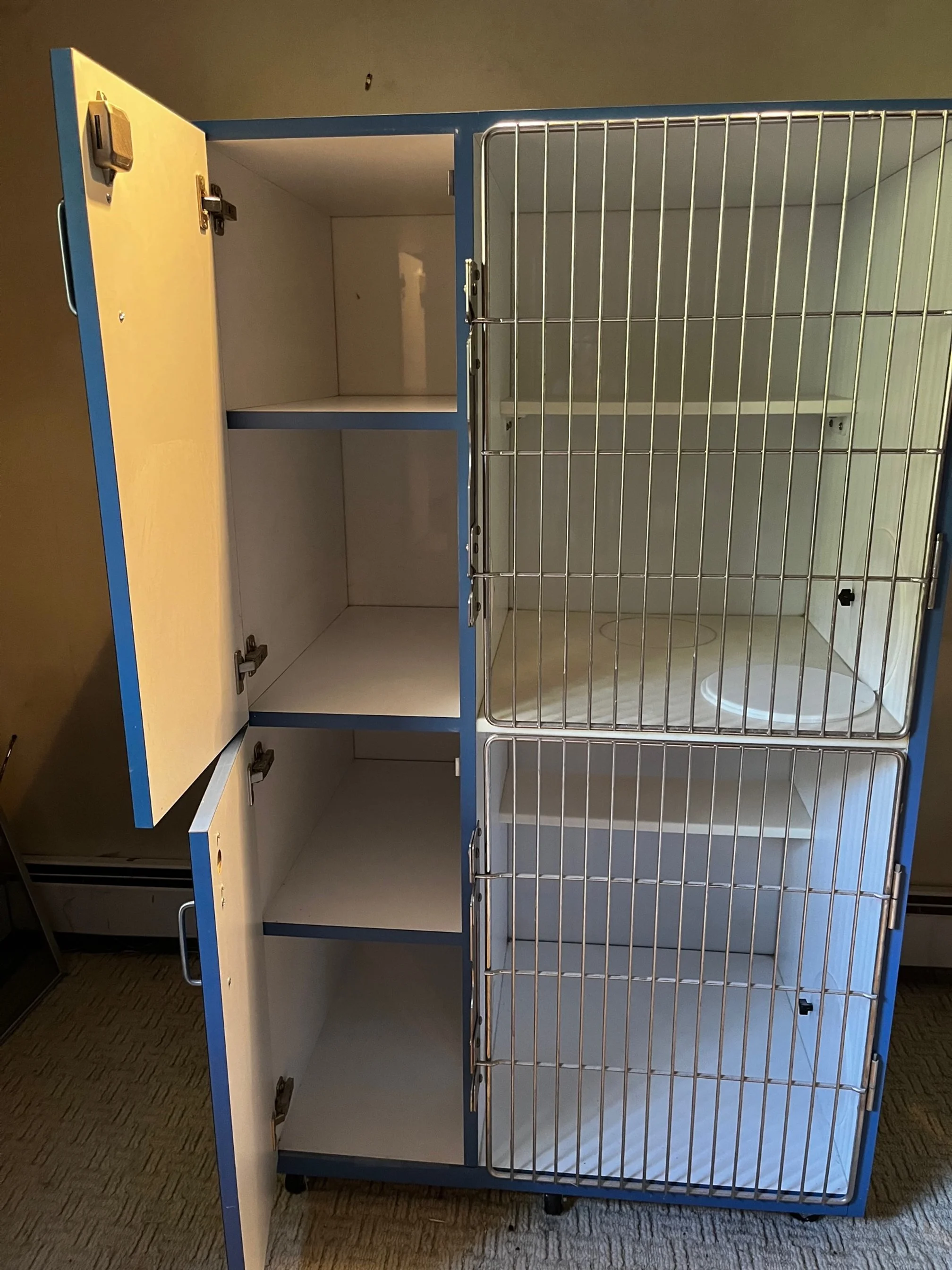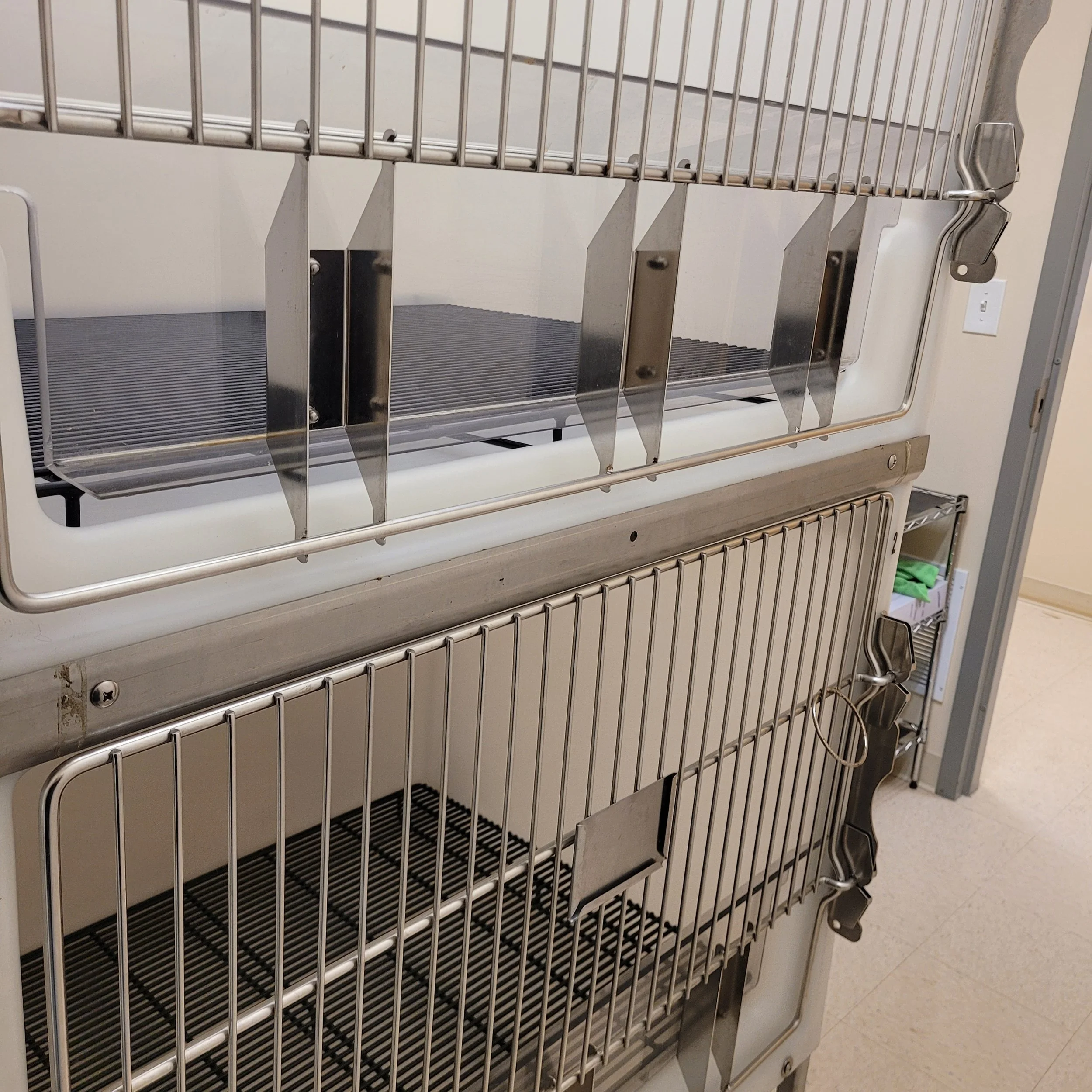 - Allows cat to be limited to one area or roam between different areas of the cage.