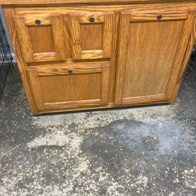 This oak vet box was made by a local cabinet company. It fits in the back of a mid or full-size SUV.